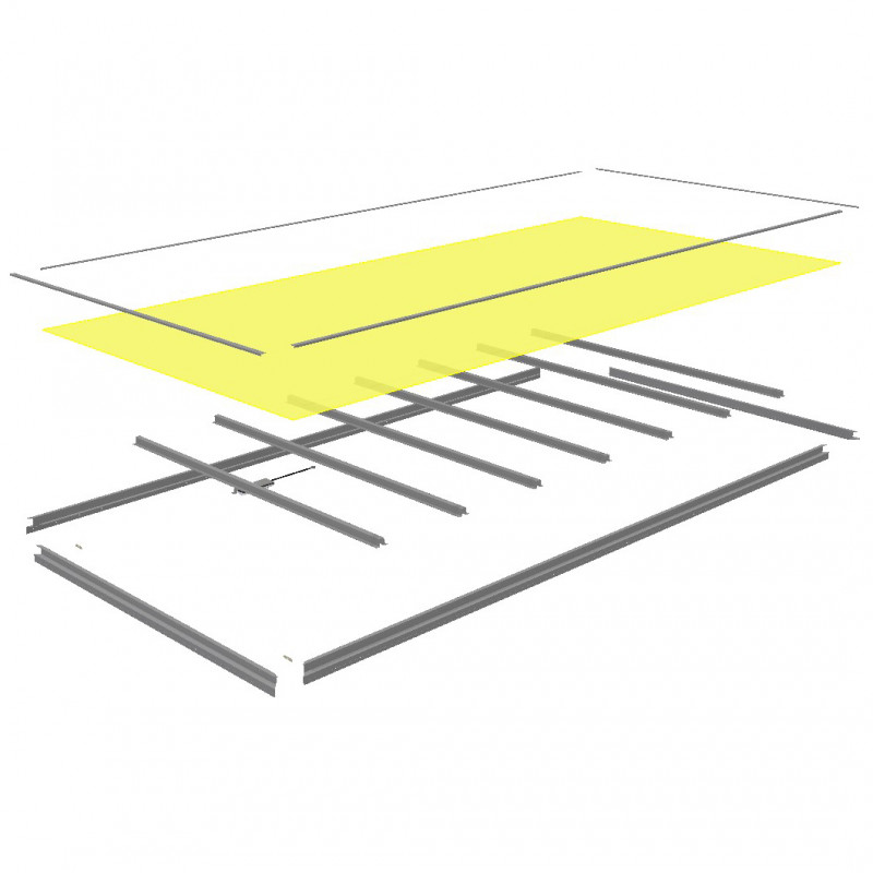 Peau polyester opalescente pour pavillon FGV (fourgon grand volume). Peau opalescente permettant de bénéficier de la luminosité extérieure. Ep. 1,6mm x larg. 2235 mm x Long. 4265 mm